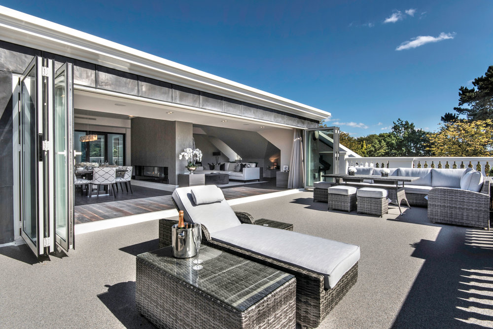 Classical elevations, handsome stone head detailing to the windows and doors and Corinthian inspired columns create a striking facade in this stunning Sunningdale apartment development for the Halebourne Group.