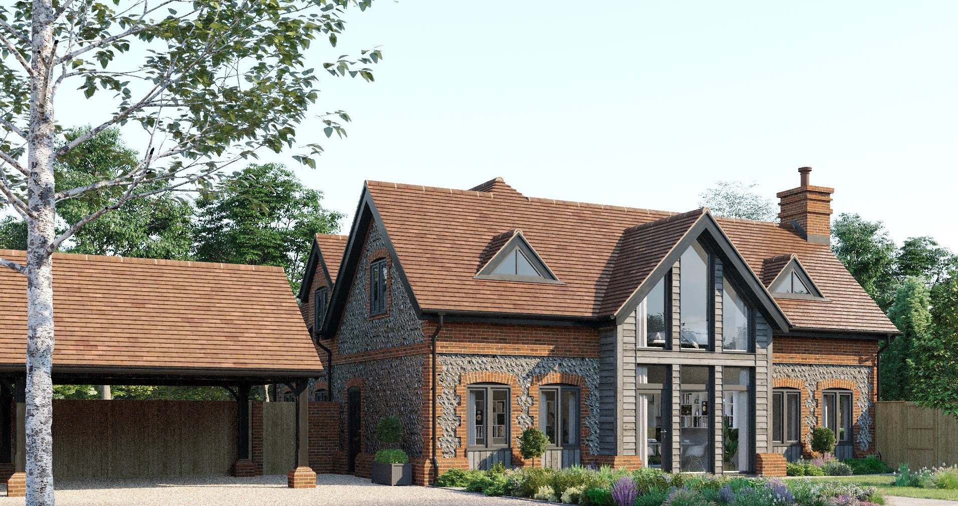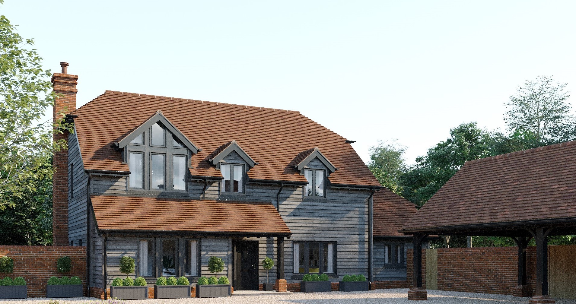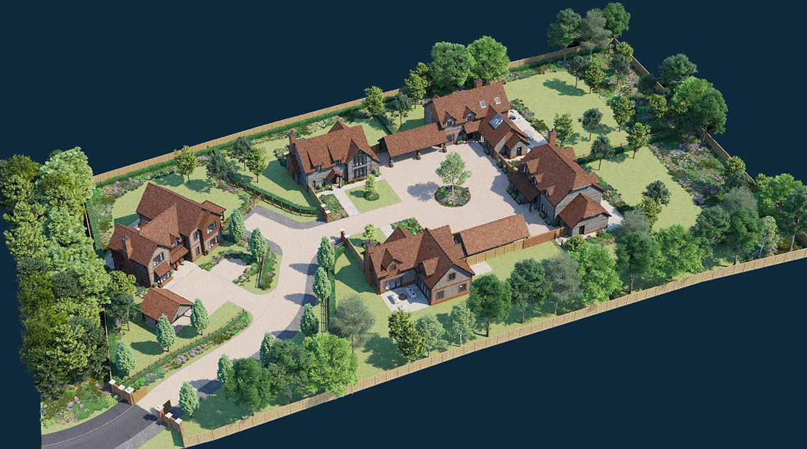 A collection of five contemporary farm/ barn style homes situated in the Chiltern Hills near Berkhamsted.